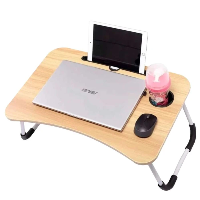 01 Mesa portátil dobrável em mdf 60x40x26cm com porta copos Interponte
