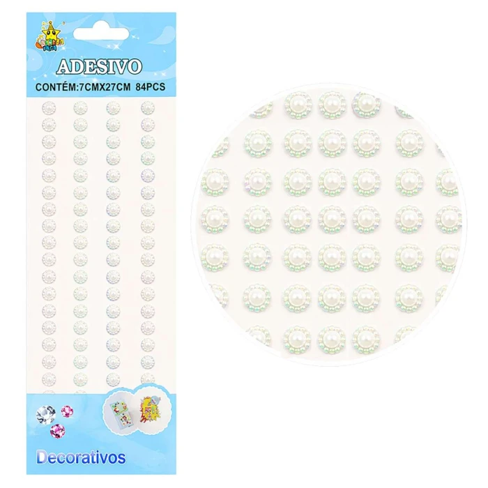 Adesivo flor 8mm pérola com 84 unidades
