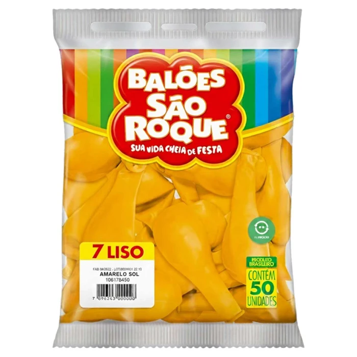 Balão 7.0 liso amarelo sol com 50 unidades São Roque