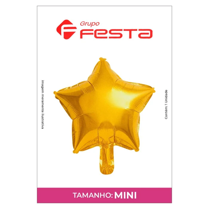 01 Balão metálico estrela dourada 12cm Grupo Festa