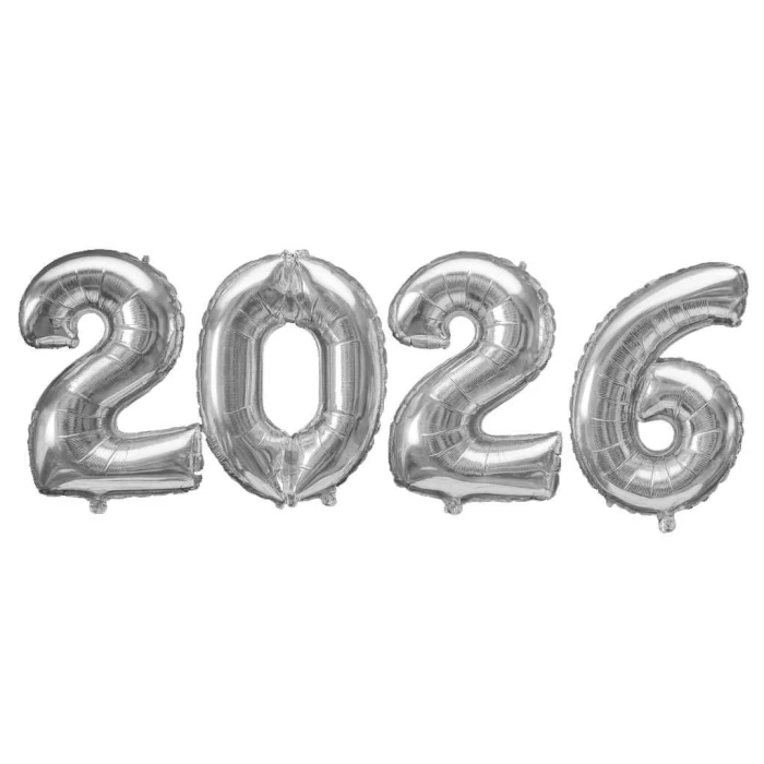 01 Balão metálico número 2026 prata 75cm Grupo Festa