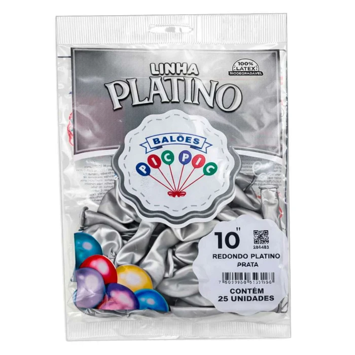 01 pacote de Balão pic-pic 10" metalizado prata com 25 unidades Riberball