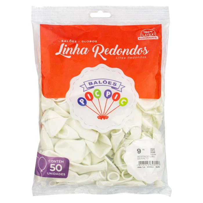 01 Pacote com 50 balões pic-pic 9" liso branco Riberball