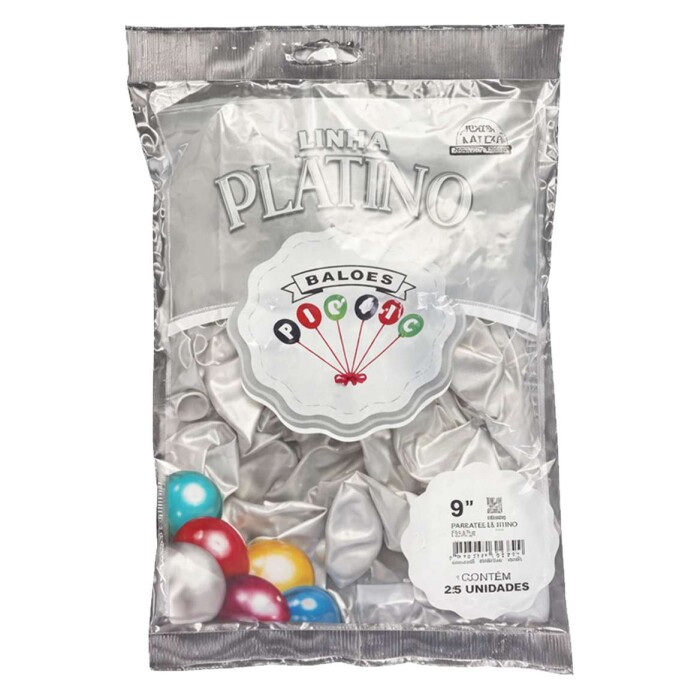 01 Balão pic-pic 9 metalizado prata 25 unidades