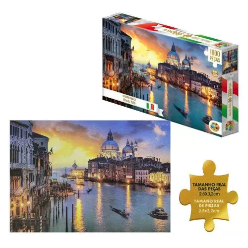 01 Caixa com 01 quebra-cabeça Veneza Italia 1000 peças 72x52cm Ggbplast