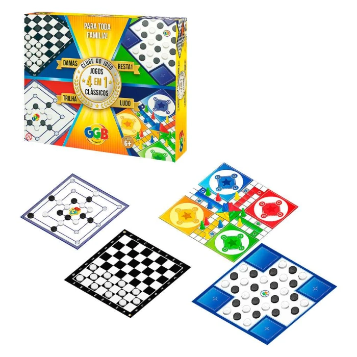01 Jogos 4 em 1 dama/trilha/ludo/resta um GGBplast