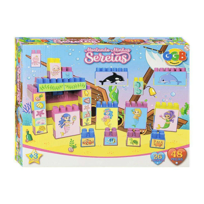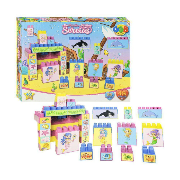 01 Monte e brinque blocos Minhas Sereias com 48 peças GGBplast