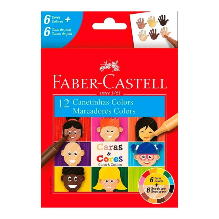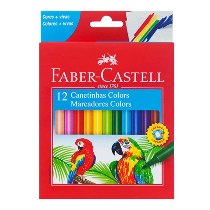 01 Caixa de canetinha hidrocor com 12 cores lavável Faber
