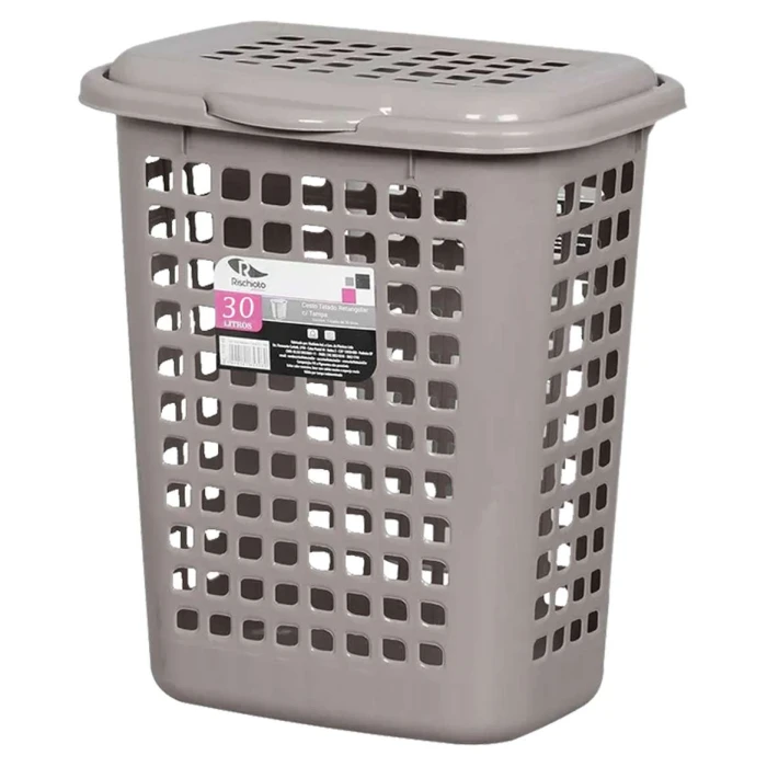 Cesto telado com tampa 30 litros retangular bege/cappucci