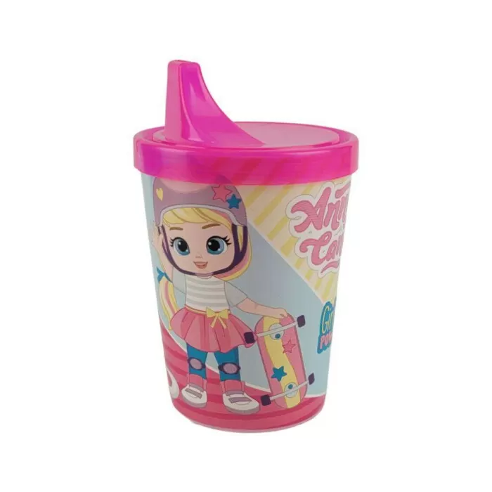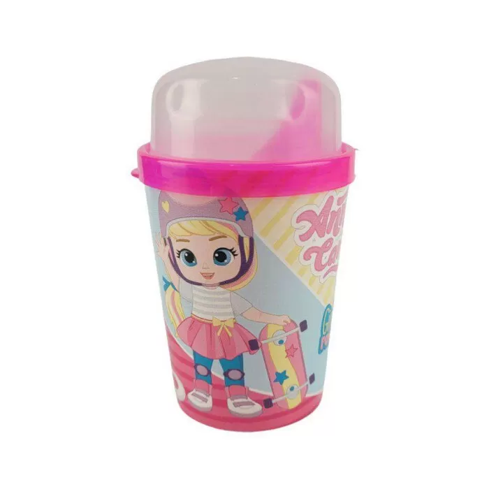 01 Copo plástico infantil com tampa suspiro 250ml Andy Candy Panamby