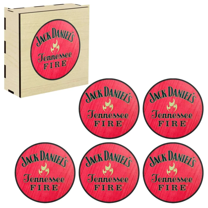 01 Caixinha com 05 unidades de descanso para copos de madeira decorado Toquinho Jr