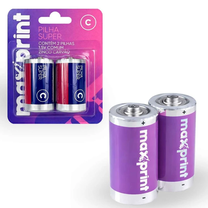 Pilha média C com 02 unidades Maxprint
