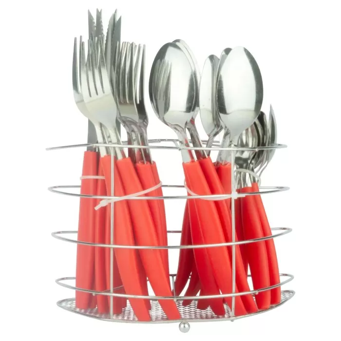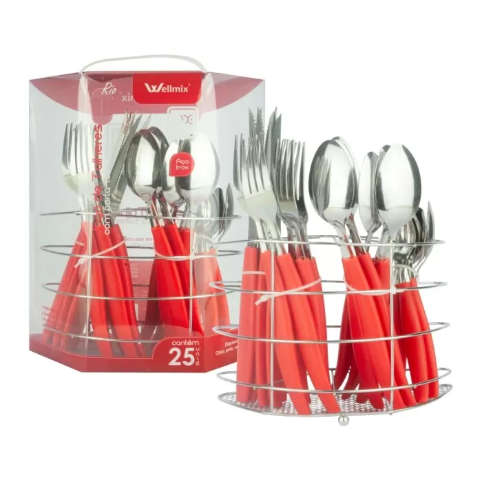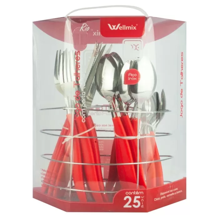 Faqueiro com 25 peças cabo plástico porta talher inox