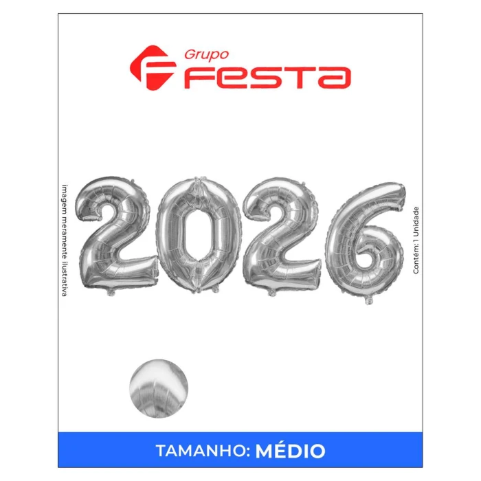 01 Balão metálico número 2026 prata 75cm Grupo Festa