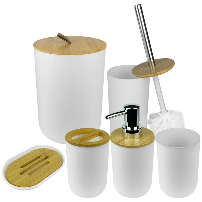 Jogo para banheiro com 06 unidades com tampa bambú branco Flashgoods