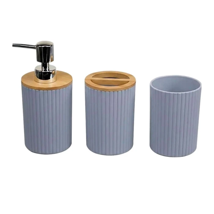 Jogo para banheiro com 4 peças bambu cinza