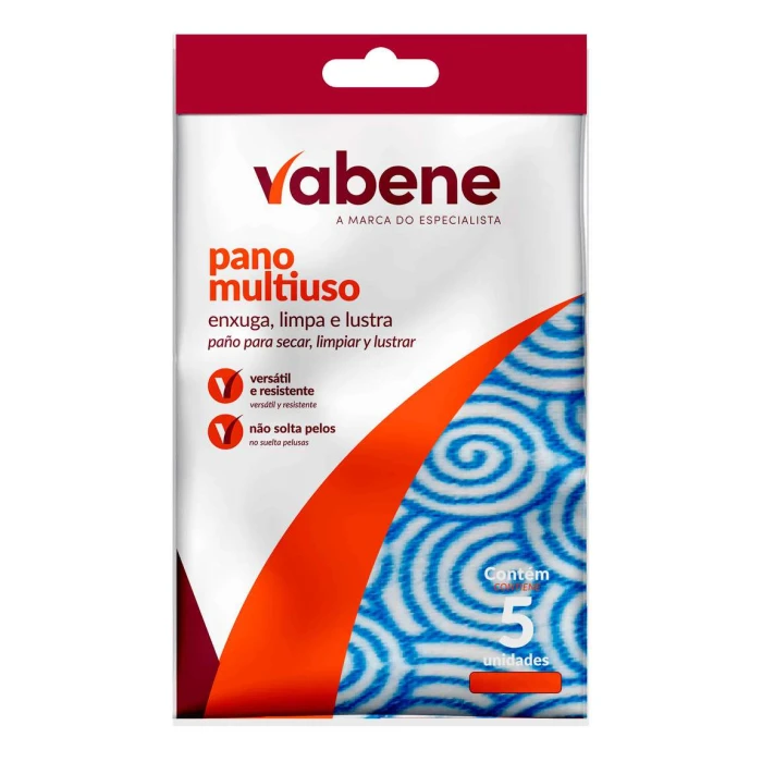 01 Pacote com 05 panos de limpeza pia multiuso 28x50cm azul Vabene