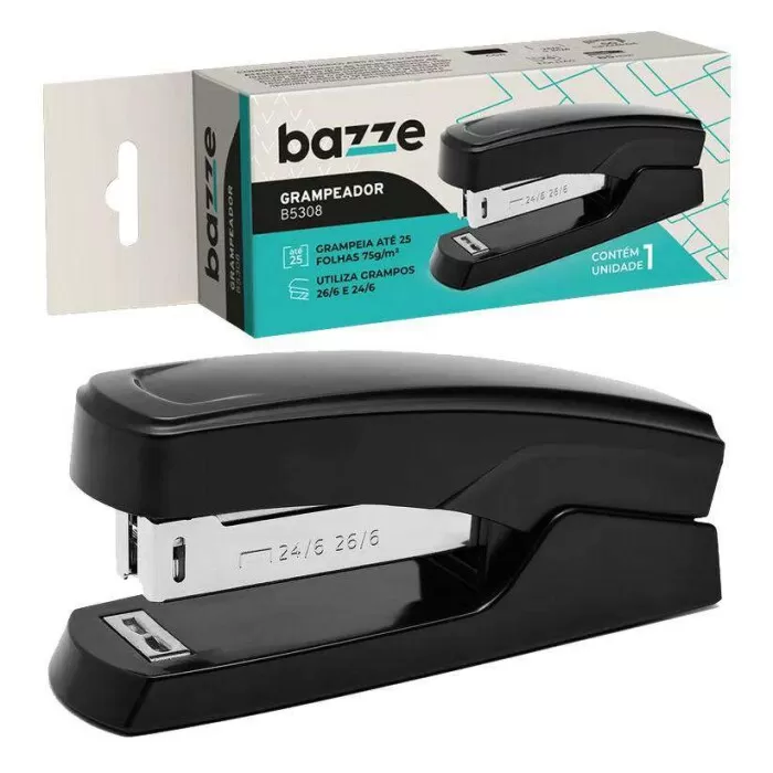 01 Grampeador 24/6 e 26/6 para 25 folhas preto Bazze