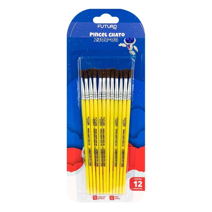 Pincel escolar chato Nº08 com 12 unidades Futuro