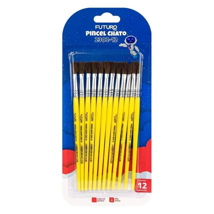 Pincel escolar chato Nº12 com 12 unidades Futuro