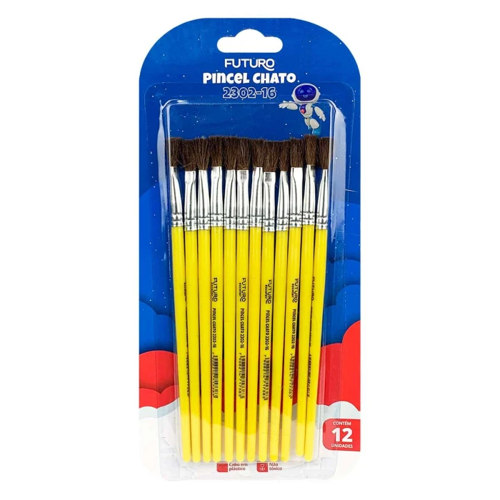 Pincel escolar chato Nº16 com 12 unidades Futuro