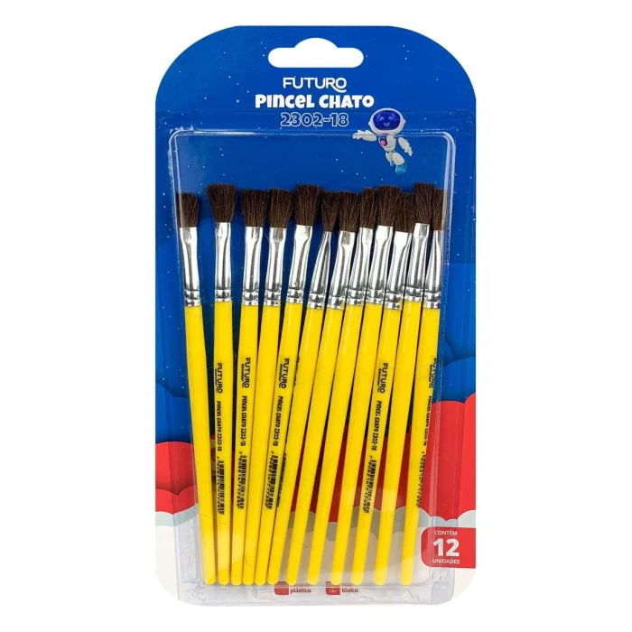 01 Cartela com 12 unidades de pincel escolar chato Nº18 Futuro