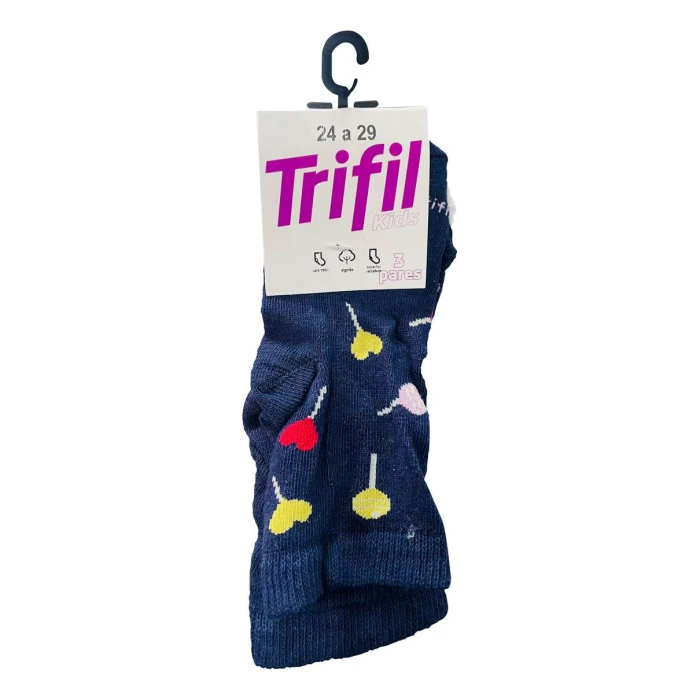 01 Pacote com 03 pares de meia infantil feminina cano médio tamanho 24 ao 29 Trifil