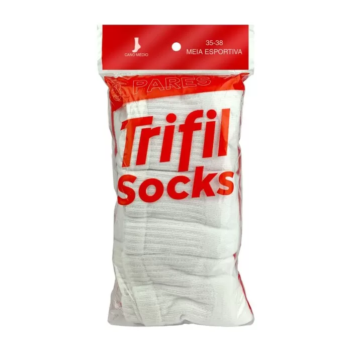 Meia esportiva cano médio com 03 pares 35 ao 38 branca Trifil
