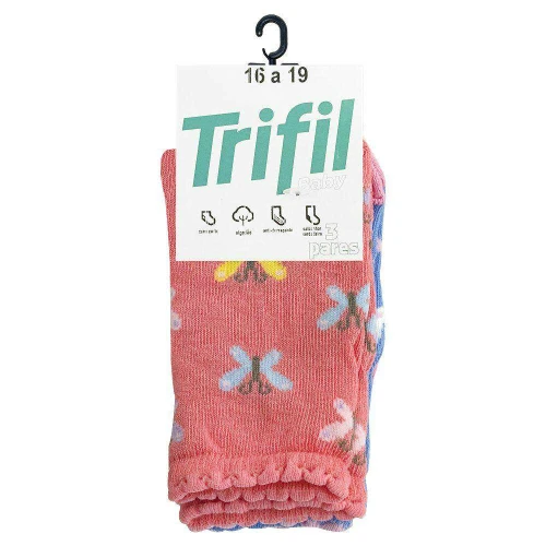 01 Pacote com 03 pares de meia bebê menina cano curto 16 ao 19 antiderrapante sortido Trifil