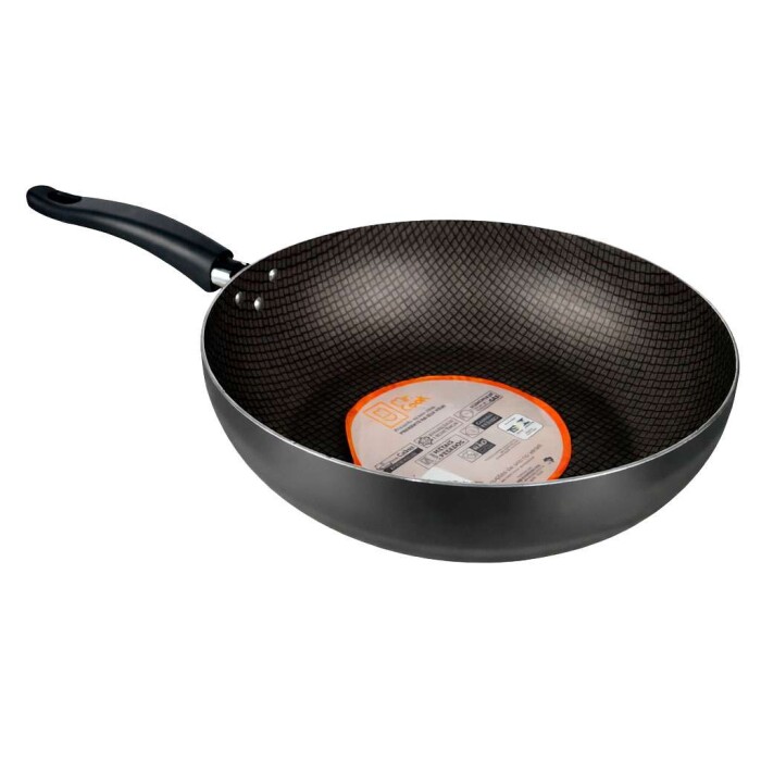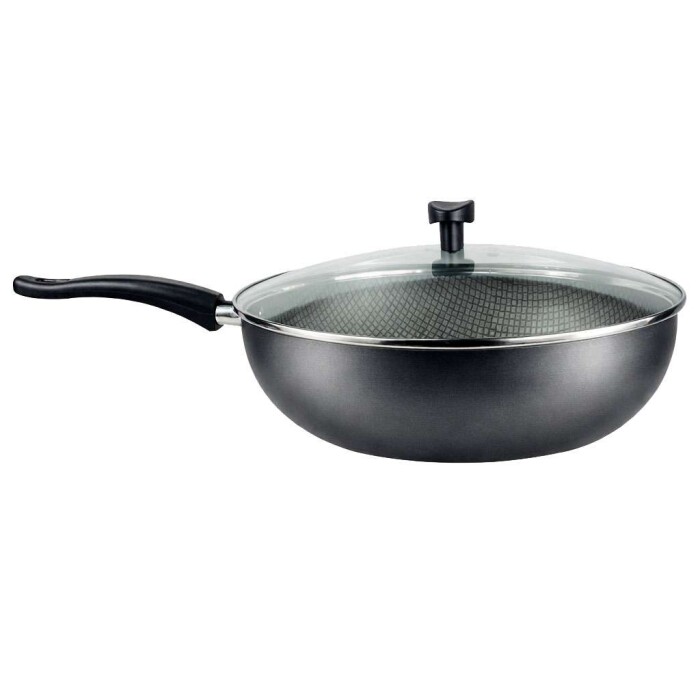 Panela wok antiaderente com tampa 28cm preto