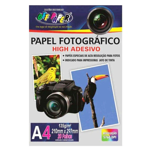 01 Papel photo high glossy adesivado 135g/m² A4 20 folhas Off Paper