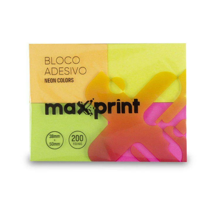 01 Bloco auto adesivo 38mmx50mm neon maxprint com 4 unidades de 200 folhas