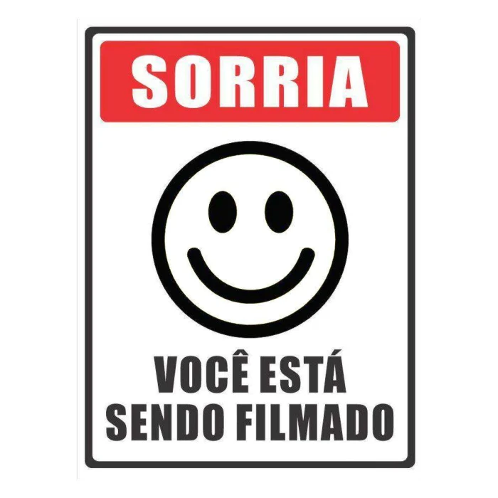 01 Placa sinalização plastico "Sorria você esta sendo filmado" 15x20cm p-26