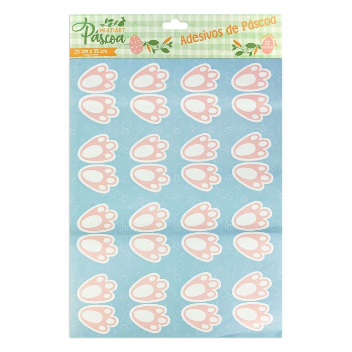 01 Pacote com 96 adesivos de páscoa patinhas de coelho