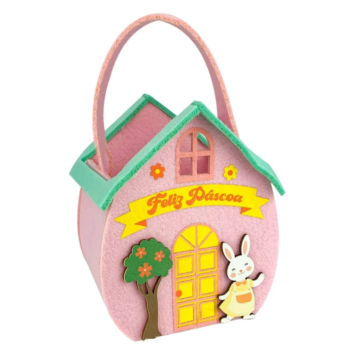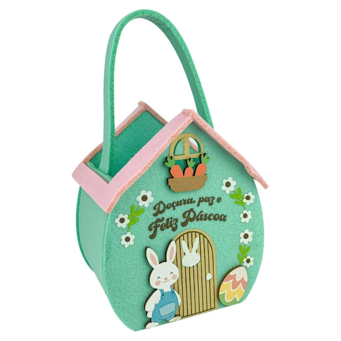 Páscoa cesta com alça de feltro decorada 12,8x15cm Multiart
