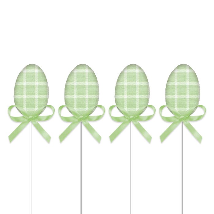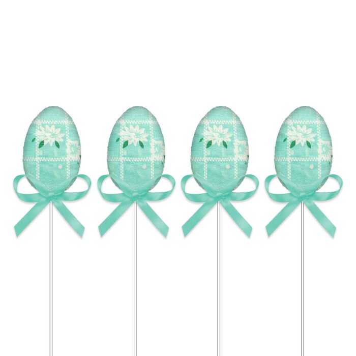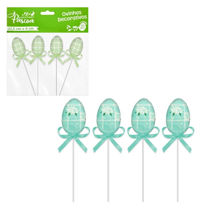 01 Pacote com 04 unidades de páscoa ovinhos decorado tecido no palito 22,5cm Multiart