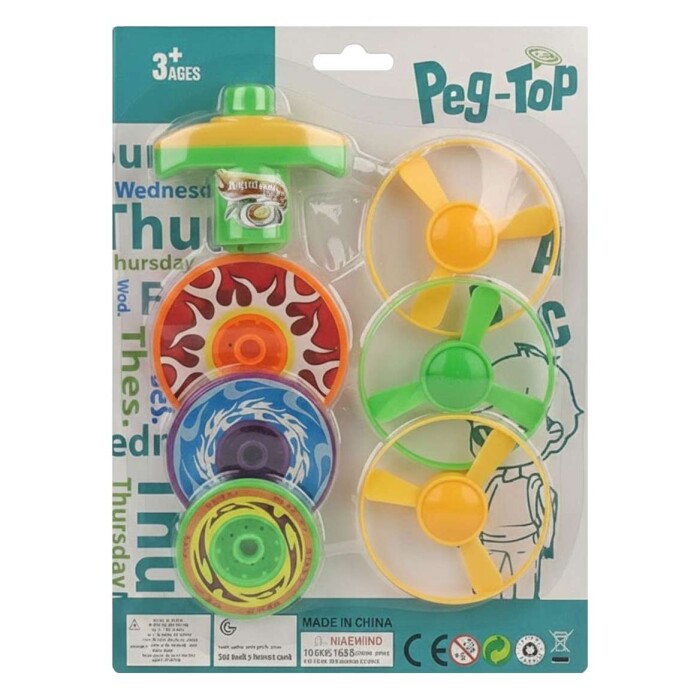 Pião plástico peg top 7 peças