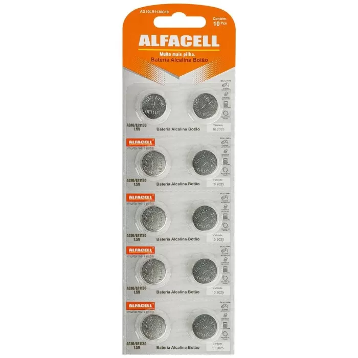 Não recarregável 01 Cartela com 10 pilhas LR1130 Alfacell
