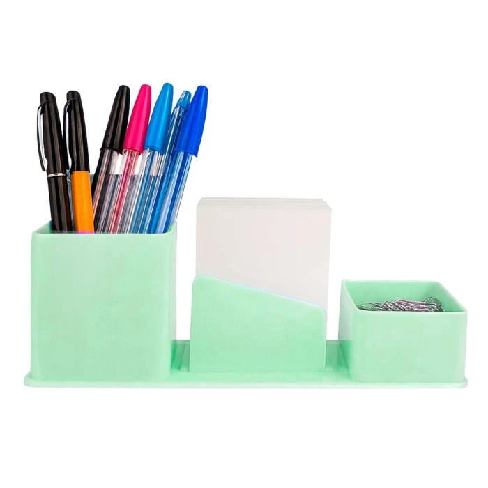 Porta canetas,clips e lembretes 03 em 01 acrilico verde