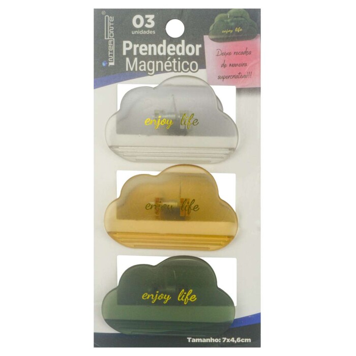 PRENDEDOR DE PAPEL ACRILICO DECORADO COM IMÃ 03 UNIDADES