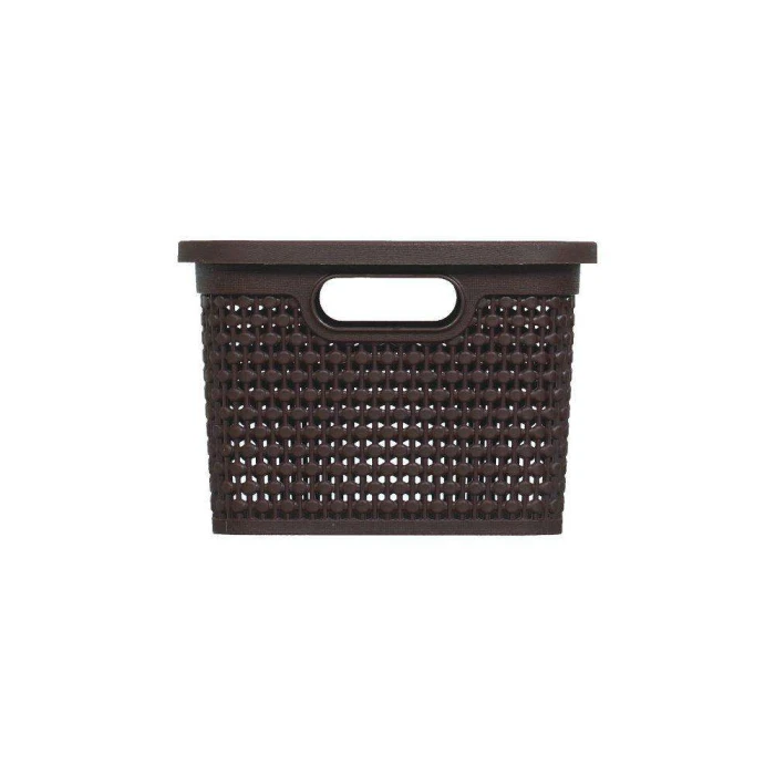 01 Cesto plastico rattan com tampa 38,7x26cm 15lts marrom rischioto