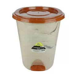 01 Lixeira com pedal 14 litros rendonda marmorizada travertino bege Plasdorta..
